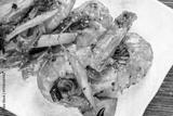 Frying shrimp with vegetables on a grill. Shrimp. Chinese cuisine. Asian food. Food concept.