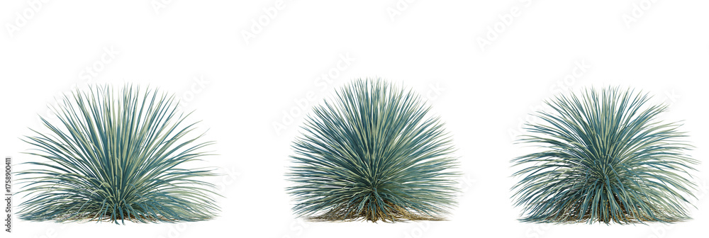 Dasylirion wheeleri tree, front view, cutout, transparent background, isolate, Three Desert Yucca Plants isolated for landscape design elements