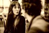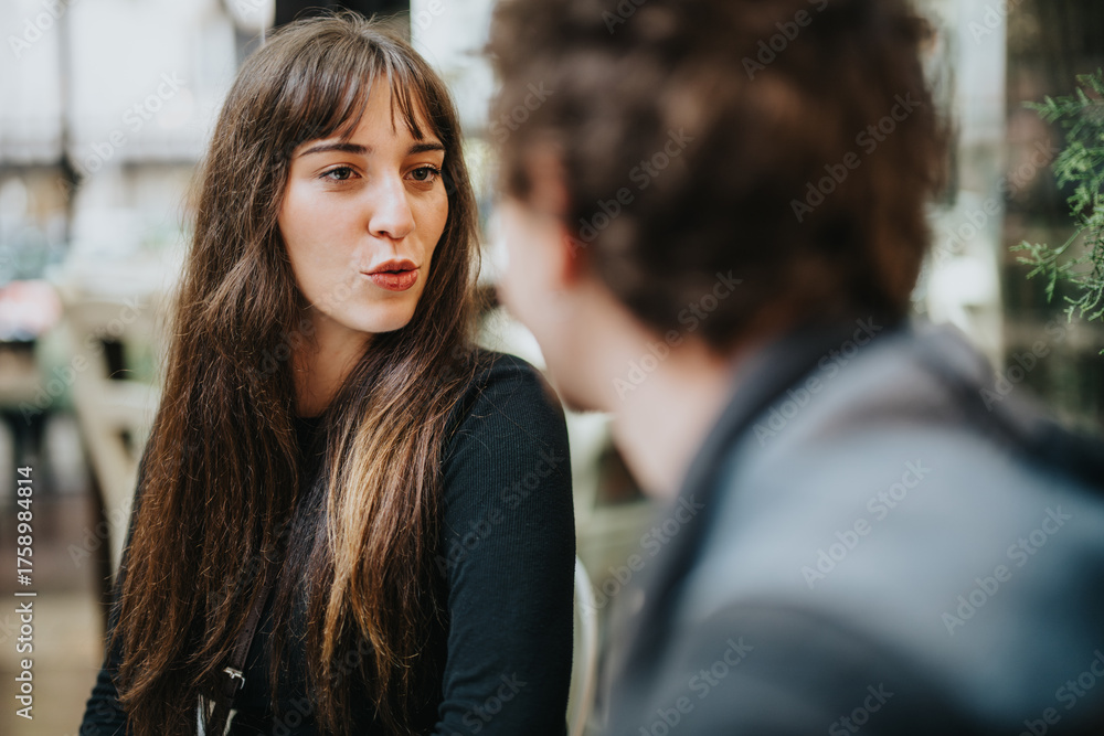 Two individuals seated and talking passionately in a casual outdoor setting showcasing friendship.
