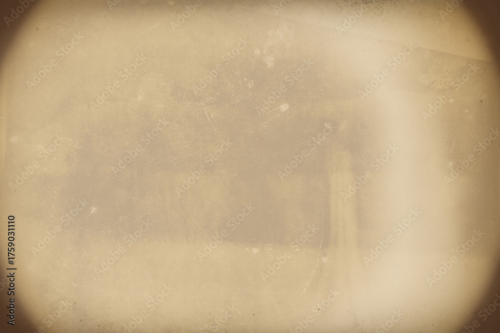 Vintage sepia wet plate technique photo simulation with vignetting, film grain and semi-transparent bacground. Can be put any image.