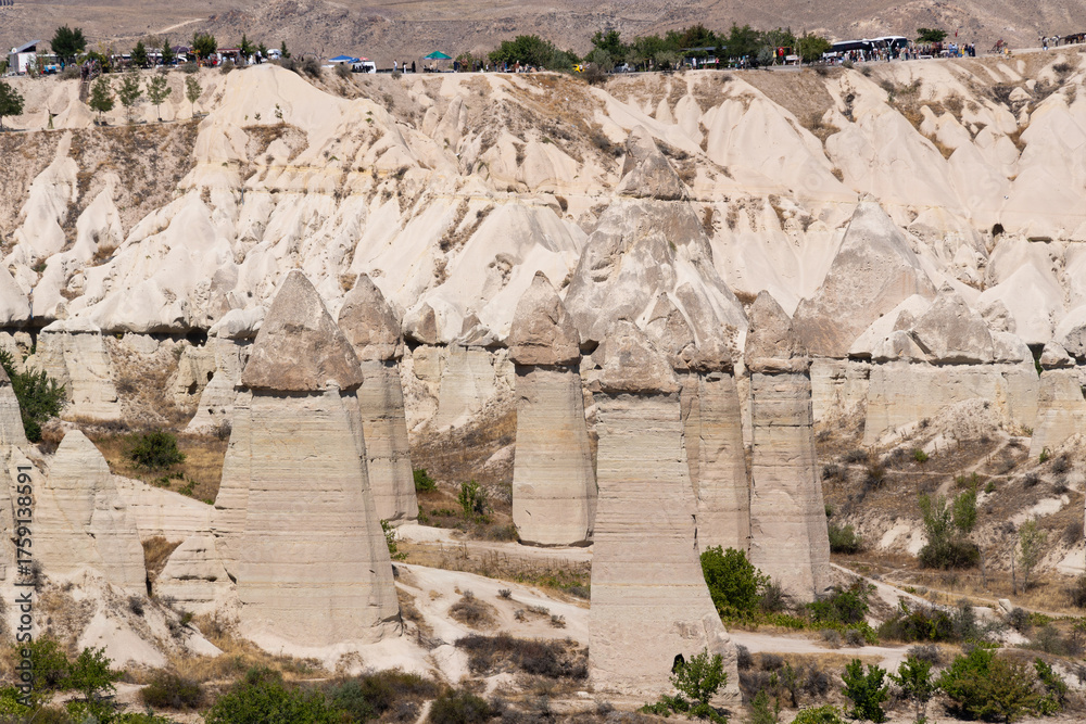 Göreme, Turkey: Love Valley with its famous phallic stone formation and chimneys in Göreme on a sunny day in Turkiye