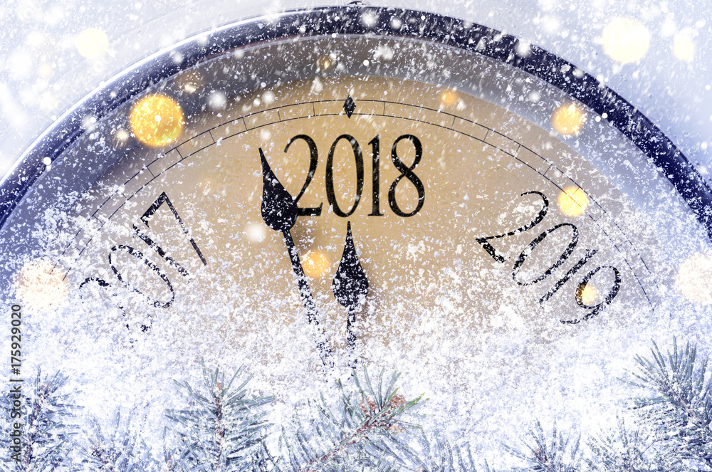 Countdown to midnight. Retro style clock counting last moments before Christmass or New Year 2018.