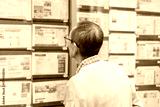 不動産広告を見るシニア男性
