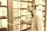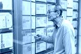 不動産広告を見るシニア男性