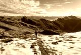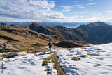 A woman hiking in the Ticino mountains on a beautiful, autumn day.