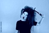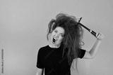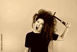 annoyed girl combs her hair