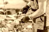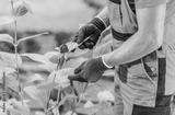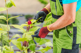 Gardener Tending to Rose Bush in Botanical Garden