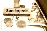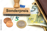 Ein Holzstempel ist beschriftet mit dem Aufdruck Sonderpreis als Symbolbild für die Ankurbelung des Handels, Einzelhandels und der gesamten Wirtschaft durch Sonderangebote und Rabatte