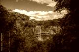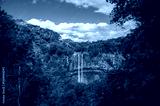 Chamarel Waterfall cascades down a cliff amid dense tropical forest in southwest Mauritius.