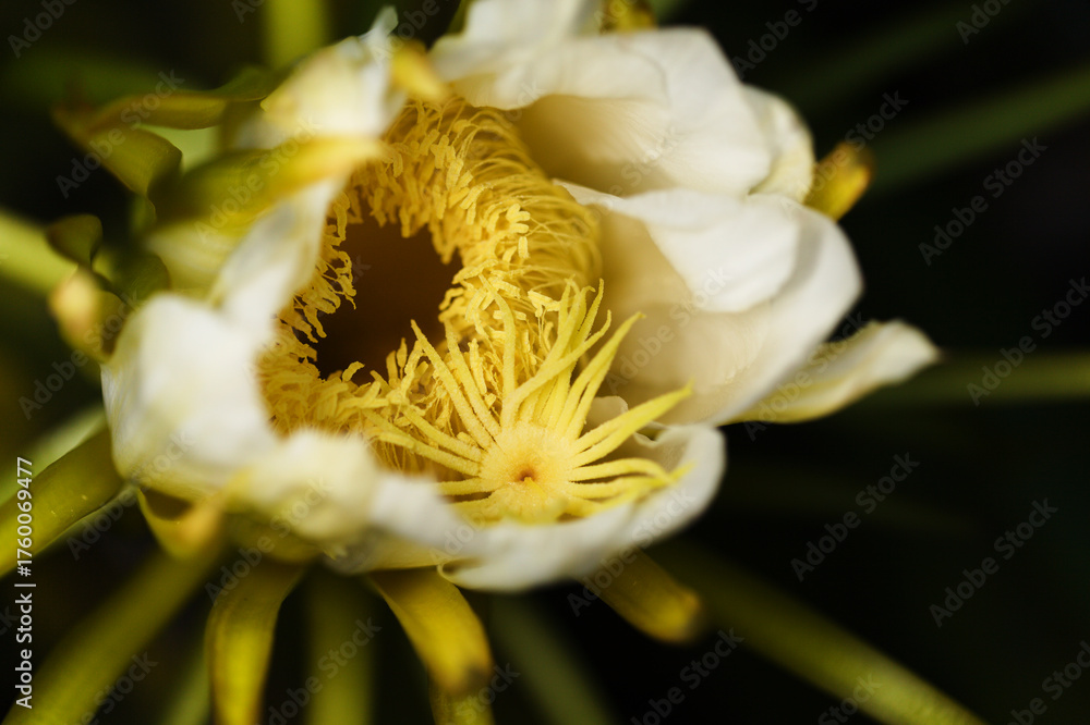 Flowering Costa Rica nightblooming cactus, Selenicereus costaricensis, natural macro background