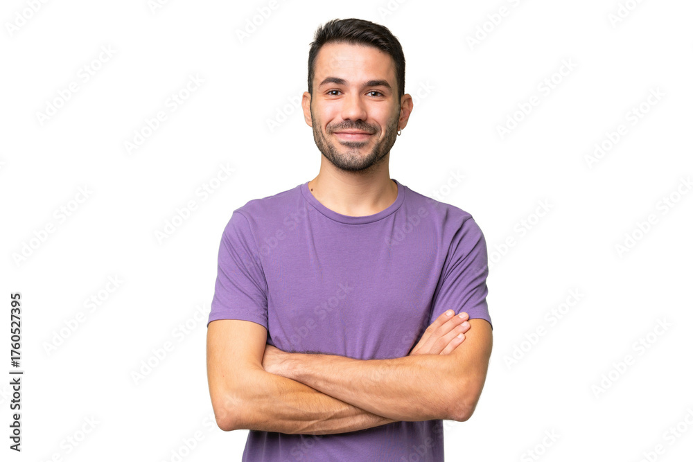 Young handsome caucasian man over isolated background keeping the arms crossed in frontal position