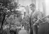 Businessman. Happiness businessman with phone around skyscrapers