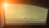 View from car window on the Mosque of Sheikh Zayed in Abu Dhabi,