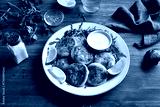 Potato pancakes made from mashed potato and minced fish served with dipping sauce