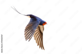 Barn Swallow Hirundo rustica in flight with its elegant tail, isolated on a white background