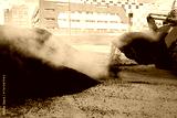 Heavy Machinery Loading Black Aggregate Material at the Construction Site for Development