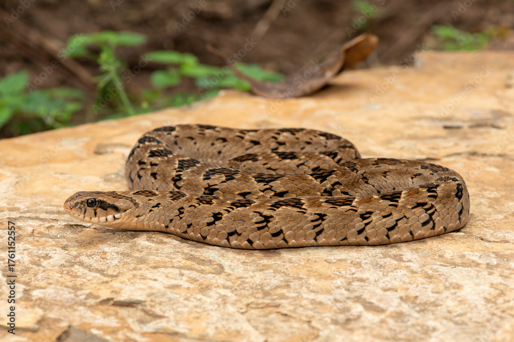 A beautiful rhombic night adder (Causus rhombeatus), also called a common night adder. Close-up in the wild– African venomous snake