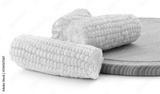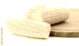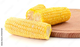 Boiled corn cobs on wooden board close-up