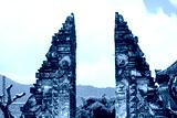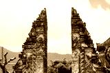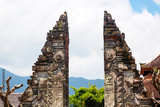 Balinese traditional gate at the Ulun Danu Beratan Temple territory on Bali Island, Indonesia with blue sky