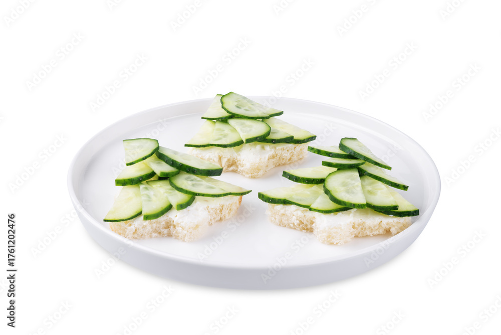 Cream cheese cucumber sandwiches in the form of Christmas tree for Christmas holidays on a white isolated background
