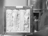 Air filter unit with pink synthetic media in metal frame used for HVAC ventilation systems to capture dust and improve indoor air quality.