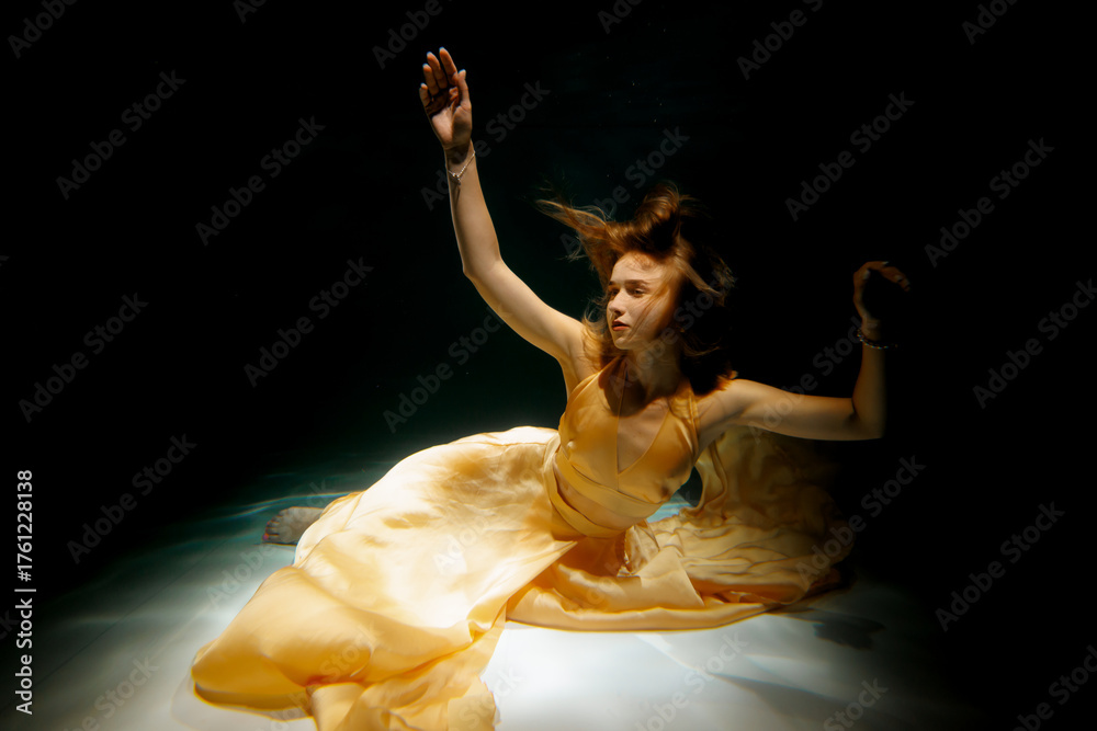 A stunning representation of ethereal underwater elegance captured beautifully in vibrant yellow