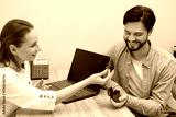 Otolaryngologist showing Modern miniature hearing aids for mid aged man at modern medical center. Audiologist helps to assess disorders of hearing Small and discreet invisible hearing aids in hands