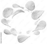 Potato chips levitate on a white background