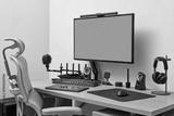 modern comfortable workspace for remote work. empty green computer pc and setup for freelancer from home office