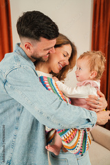 Cherished family interactions showcase the loving bond between parents and their delightful baby, radiating warmth and joy in every affectionate embrace shared during playful moments together.