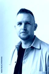 A man with a short haircut and a neutral expression poses in a beige shirt against a white background.