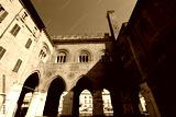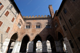 PIACENZA. ITALY, MARCH 19, 2025 - The internal courtyard of the Gothic Palace in the center city of Piacenza, Italy