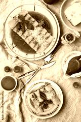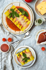 Delicious italian cannelloni pasta dish with fresh basil and tomato sauce