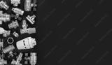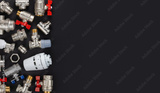 water ball valve with connecting fitting, and thermostatic valve head on bark background