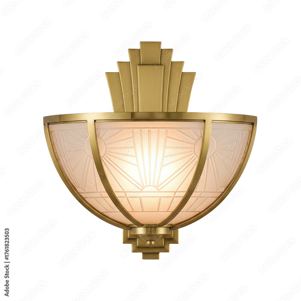 Art deco brass wall sconce light isolated