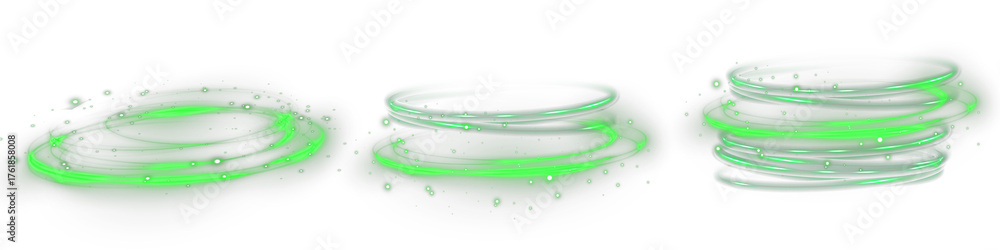 Abstract green neon ring with light movement and glowing particles. Futuristic luminous circle perfect for sci-fi, digital tech, and energy motion design.