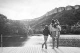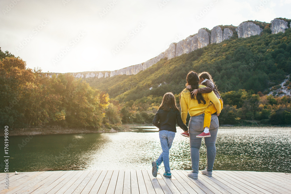 Family spending time together by the lake