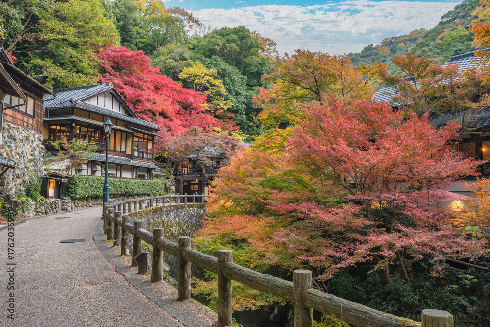 Osaka Japan, Minookoen the walkway to Minoh Falls in autumn season