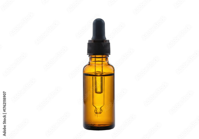 Amber glass bottle with dropper isolated, essential oil container for aromatherapy and skincare on transparent background