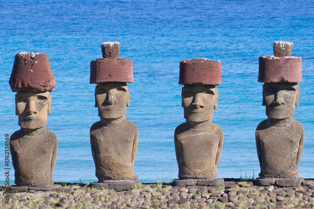 Group of old Moais located in the Rapa Nui National Park, Easter Island
