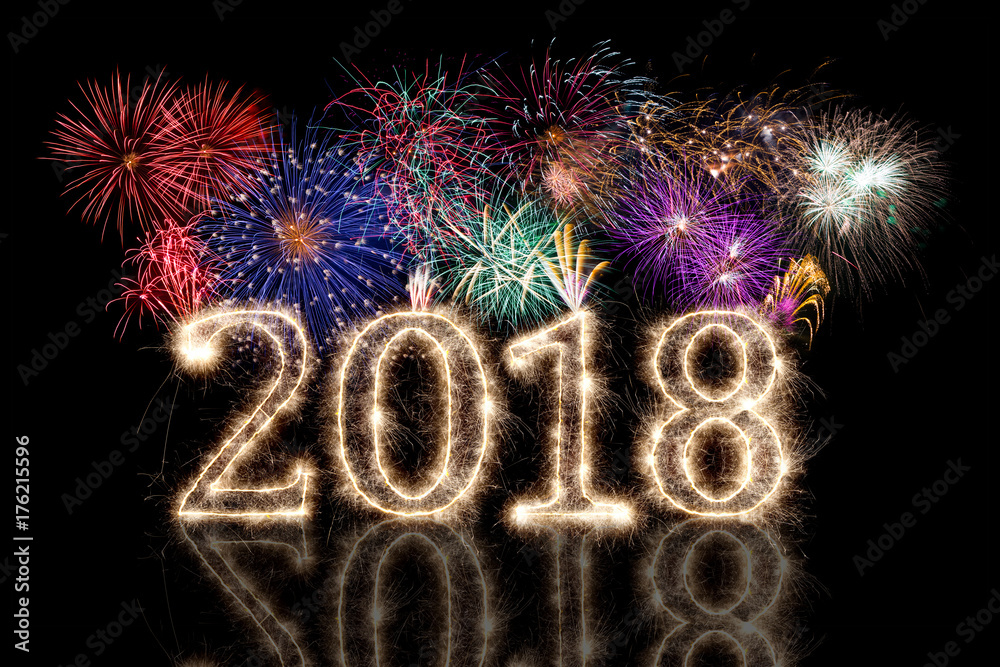happy new year 2018 sparkler background with fireworks and spark pyro number