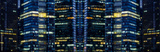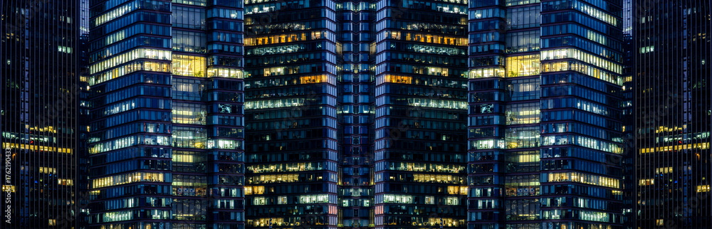 Multi-stories office building at night with worker working overtime. late night at office. lighting and working people within