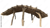 Hunter’s Tent or Primitive Lean-To Shelter Constructed from Branches and Thatched Material Isolated on White Background with Copy Text Space. Survival Element for Wilderness, Camping, PNG File