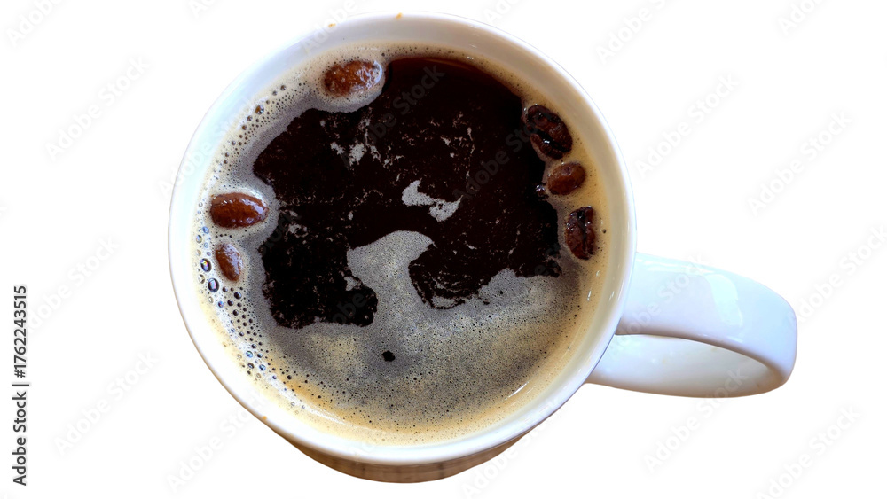 Cup of Black Coffee Isolated on White Background with Copy Text Space. Morning Beverage Concept for Cafes, Menus, and Food Advertisements. PNG File.