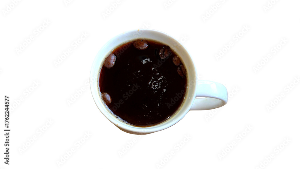 Cup of Black Coffee Isolated on White Background with Copy Text Space. Morning Beverage Concept for Cafes, Menus, and Food Advertisements. PNG File.