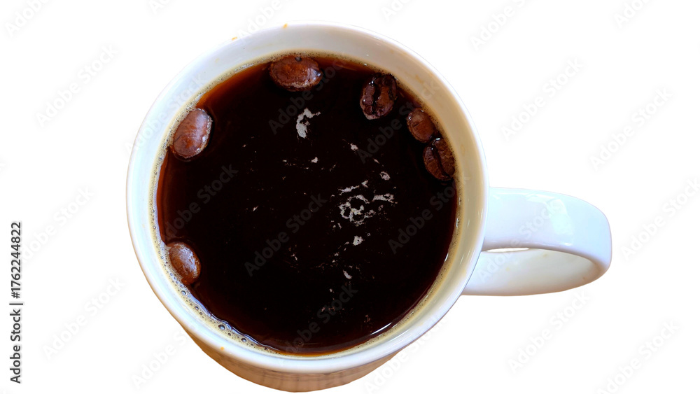 Cup of Black Coffee Isolated on White Background with Copy Text Space. Morning Beverage Concept for Cafes, Menus, and Food Advertisements. PNG File.