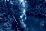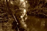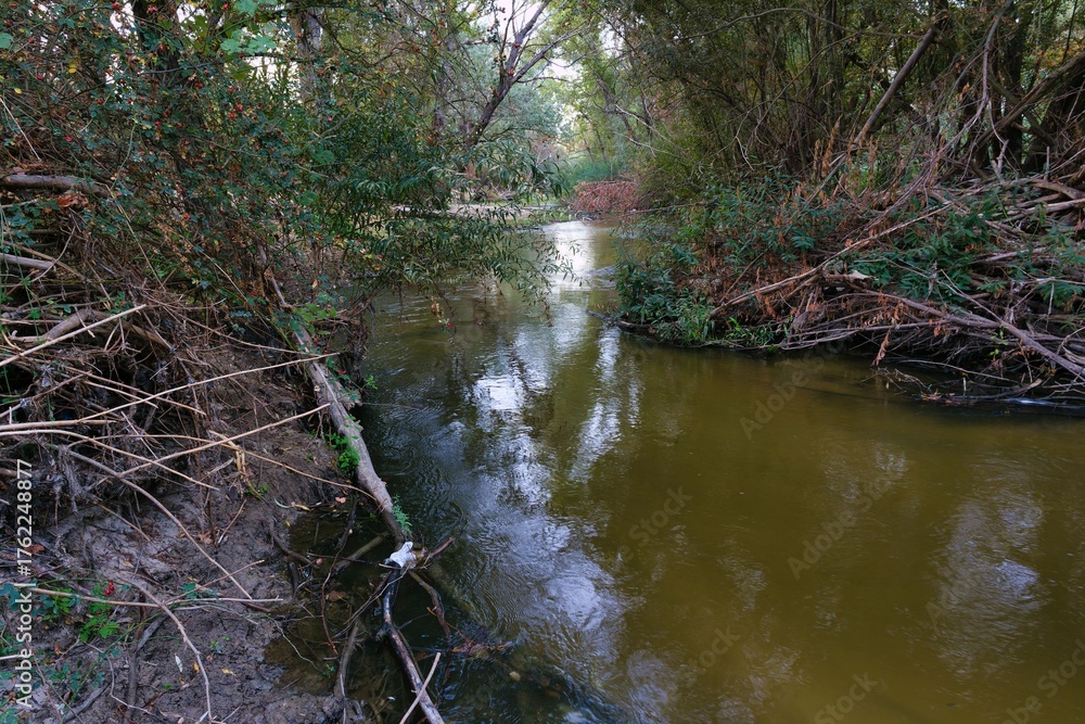 Calm river winding through lush vegetation on a sunny afternoon in a peaceful natural setting