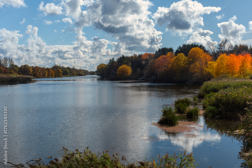 Jesień nad rzeką Odrą we Wrocławiu