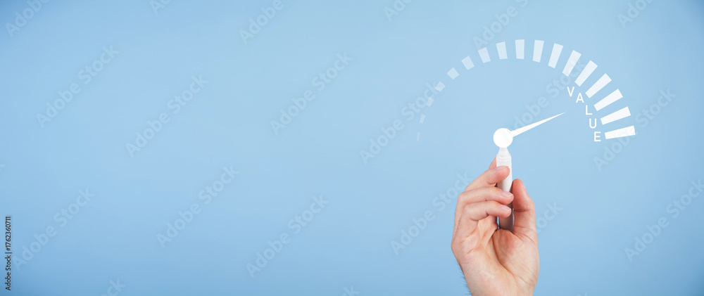 Speedometer with value word. Business concept