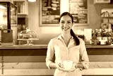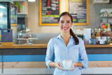 Coffee shop barista serving coffee